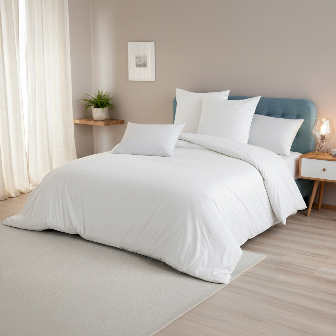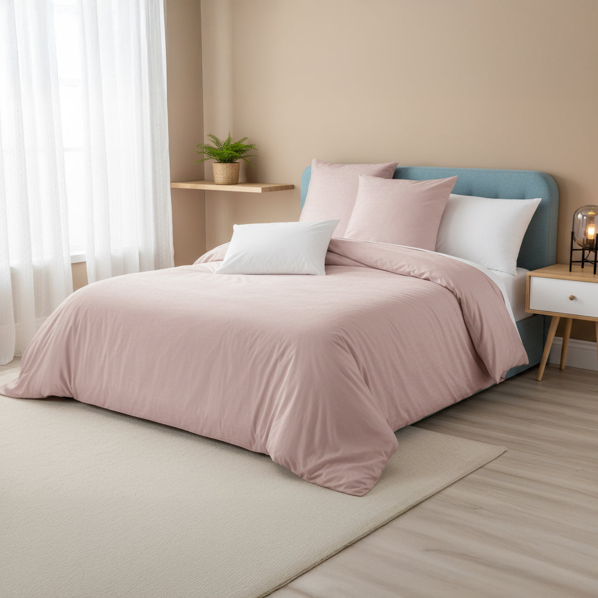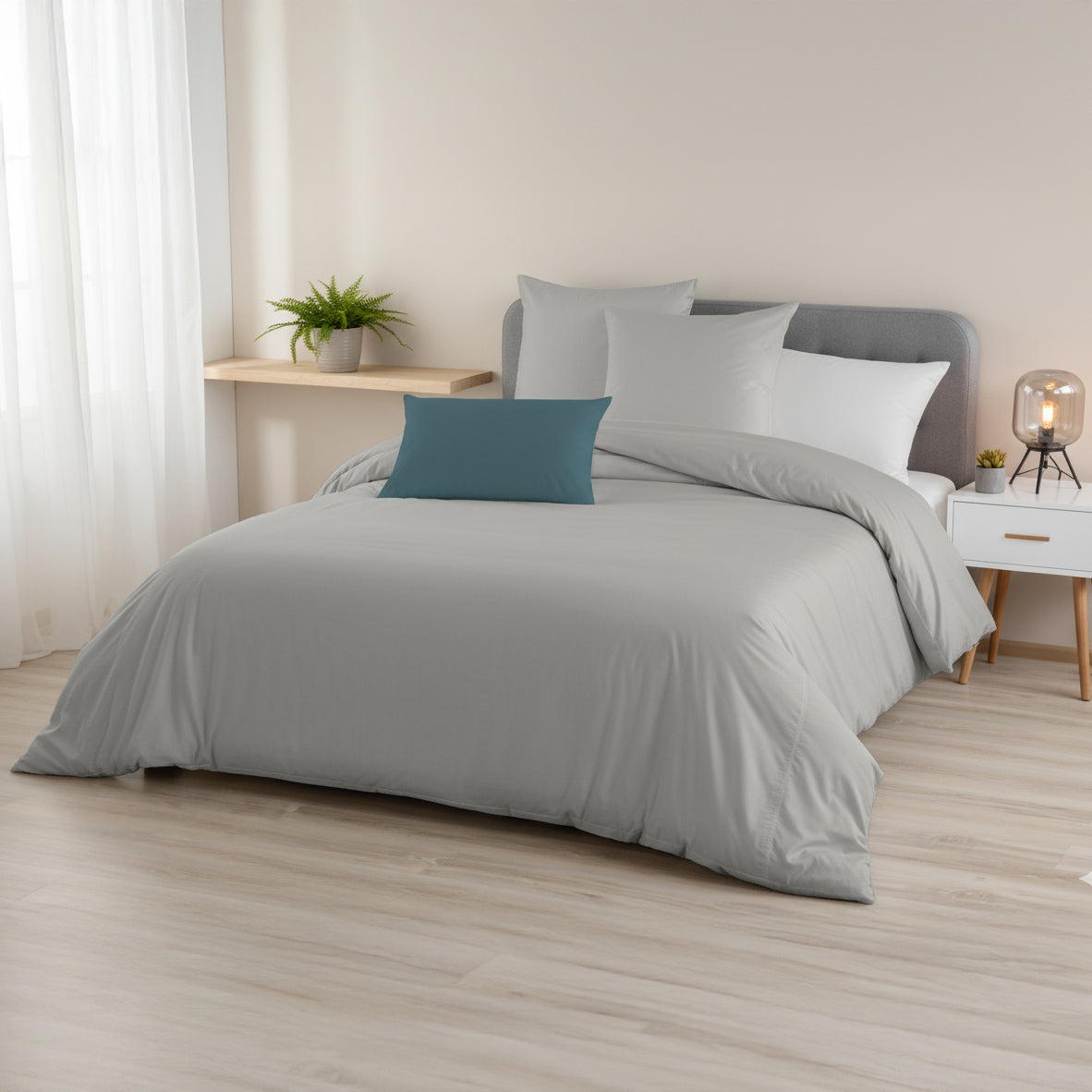 A Capa de Edredão Lisa é a escolha ideal para quem procura um visual clean, moderno e fácil de combinar. Com um design intemporal e acabamento cuidado, adapta-se a qualquer estilo de quarto, desde os mais minimalistas aos mais acolhedores. O tecido suave proporciona conforto ao toque e é prático para o uso diário.