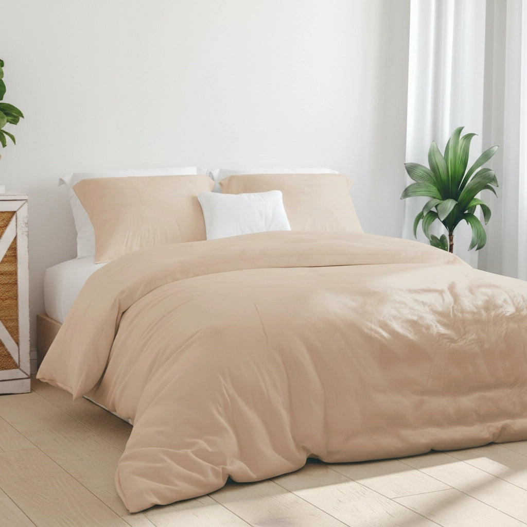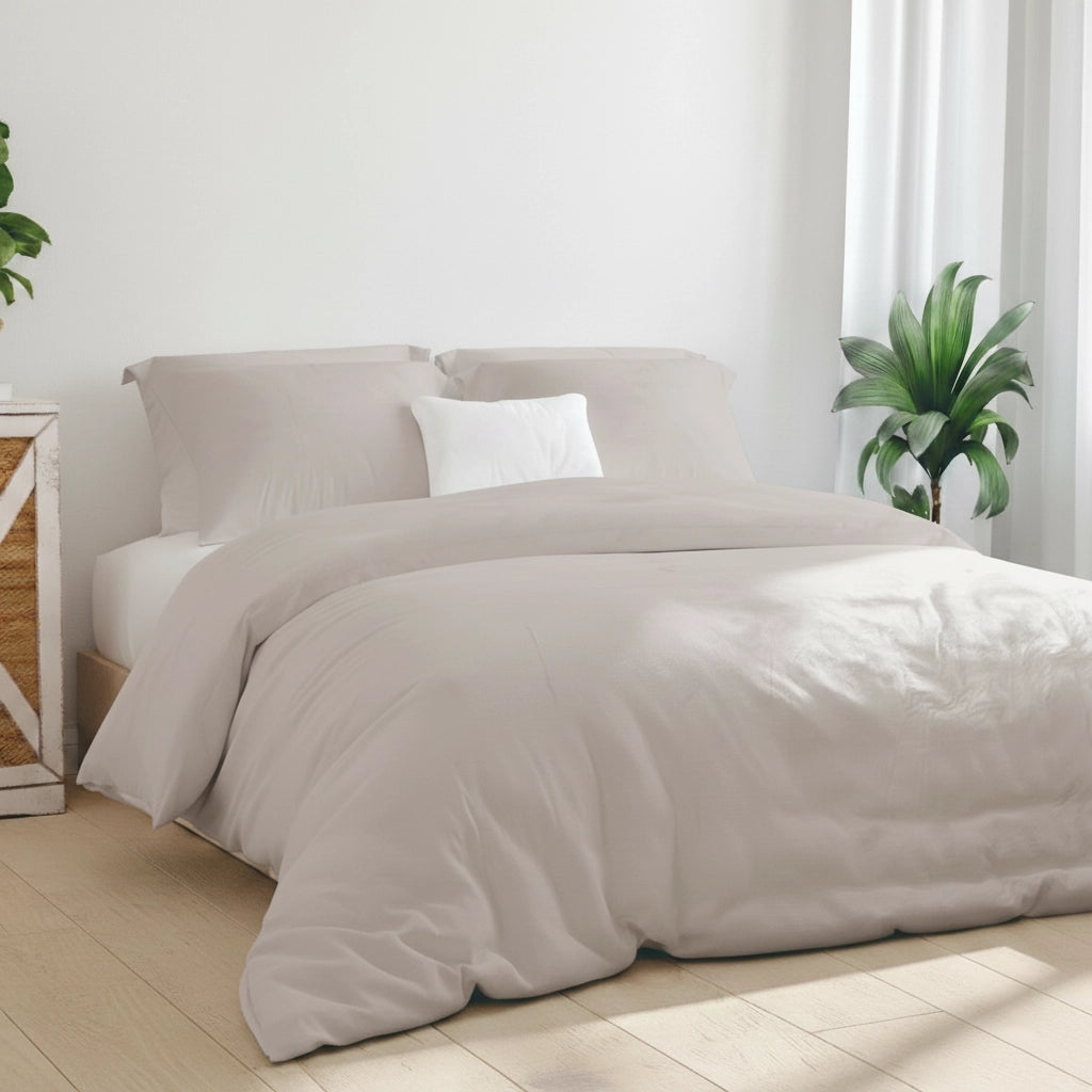 Esta capa de edredon em percal 100% algodão foi pensada para quem valoriza conforto, frescura e qualidade no descanso. O tecido percal distingue-se pelo seu toque suave, respirável e agradável à pele, proporcionando uma sensação de leveza e bem-estar durante toda a noite.