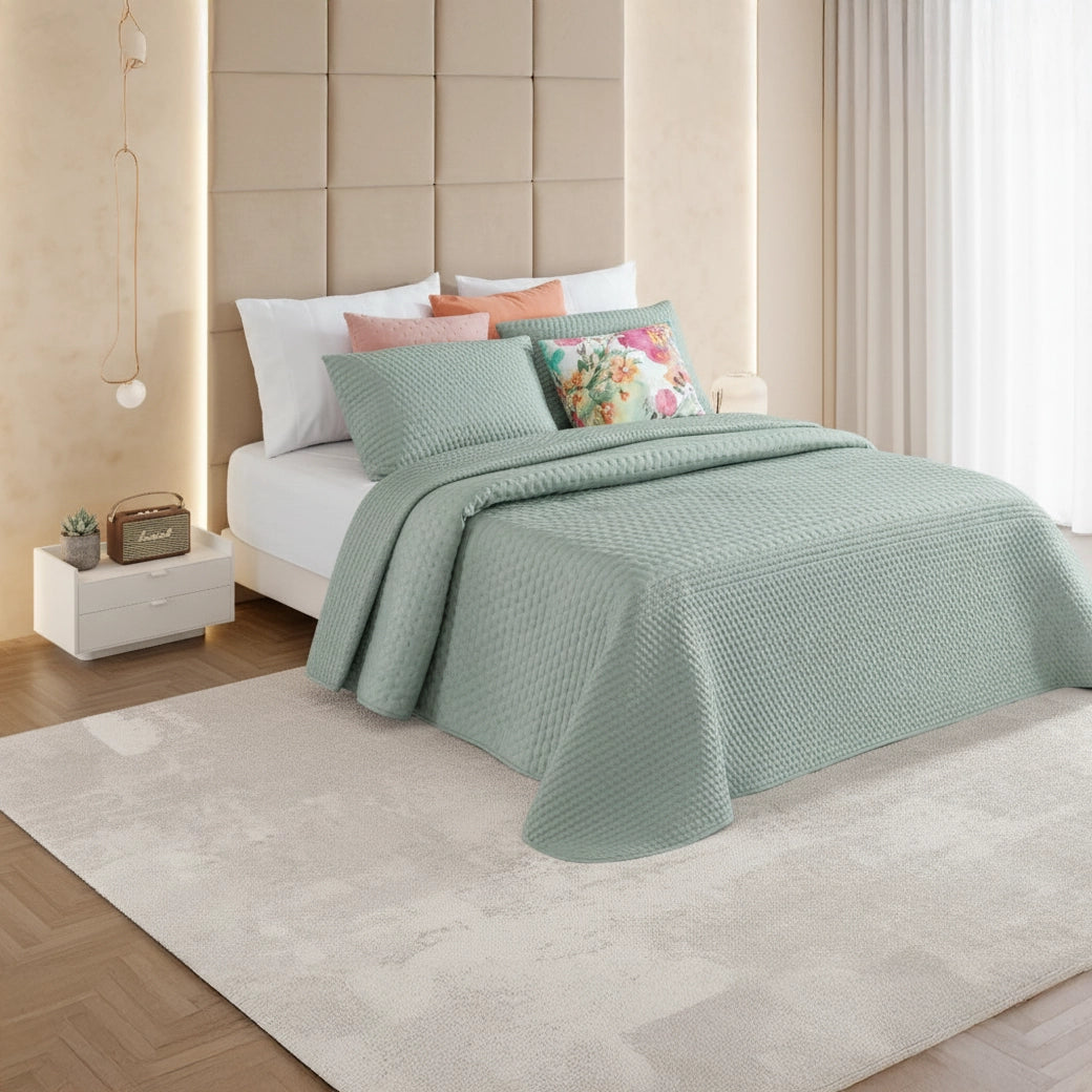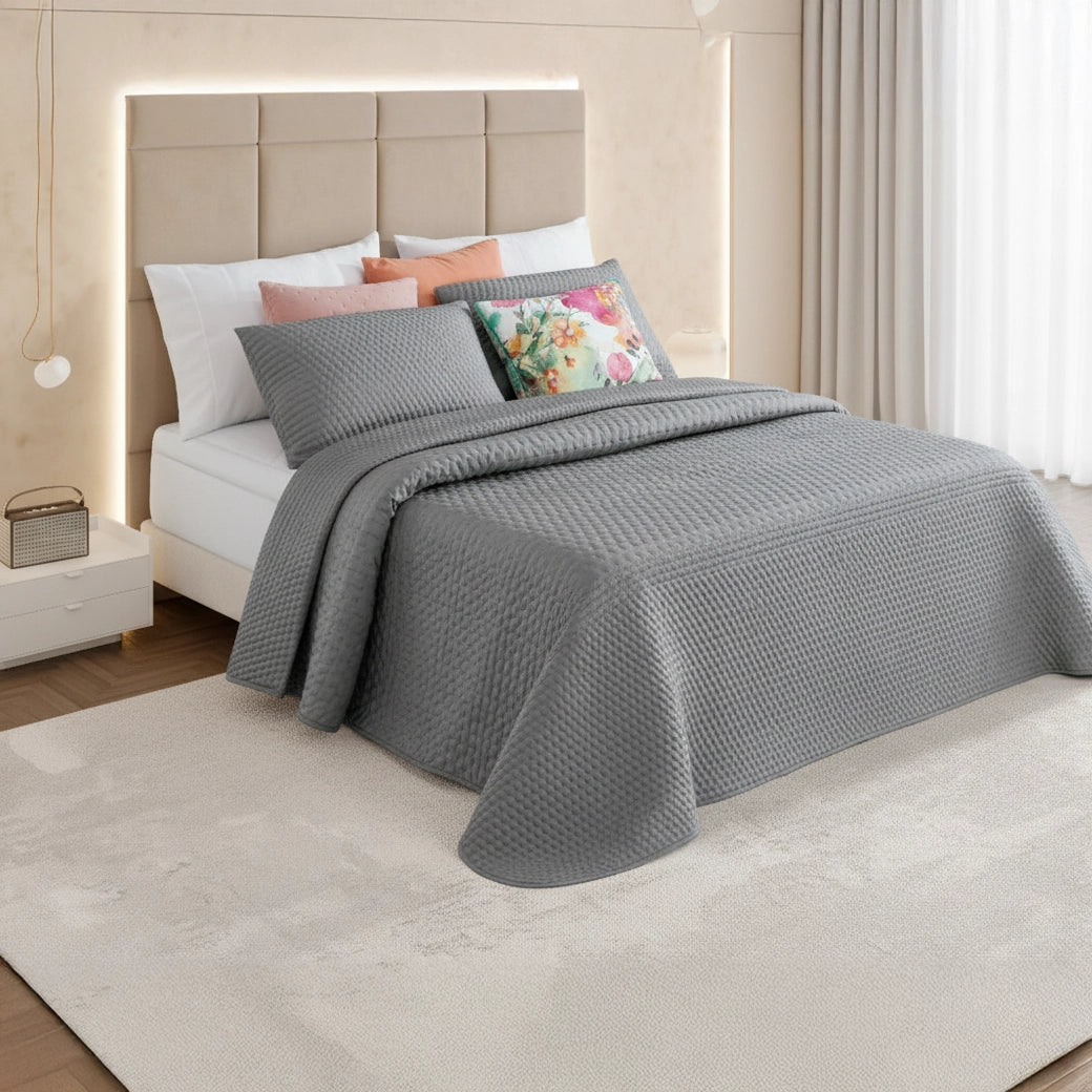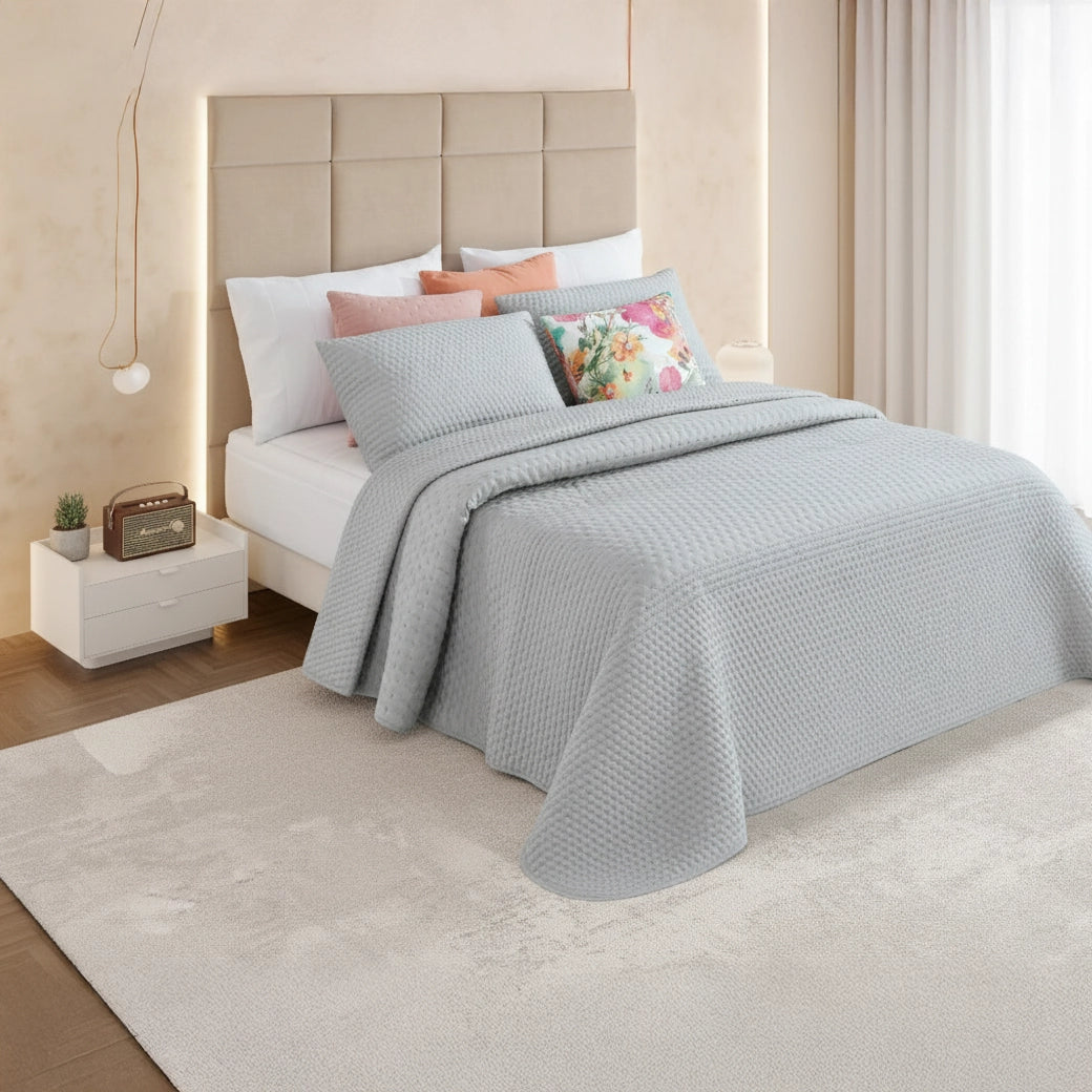 O seu design intemporal adapta-se facilmente a diferentes estilos de decoração, desde ambientes mais modernos a espaços clássicos, criando uma cama visualmente harmoniosa e acolhedora. Inclui almofadas coordenadas que completam o conjunto e elevam o resultado final.