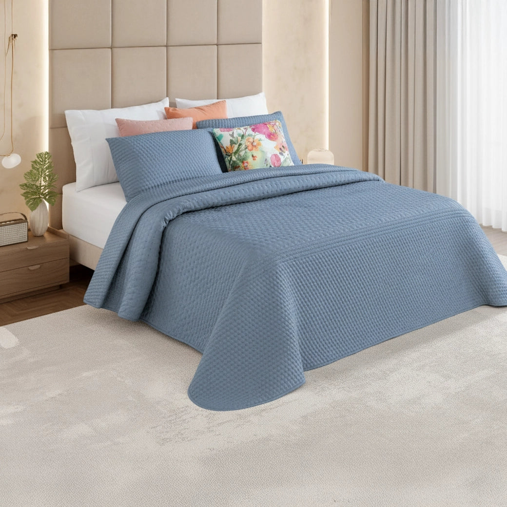 Esta colcha foi pensada para quem valoriza elegância discreta, conforto e um acabamento cuidado no quarto. O tecido com toque de linho confere um aspeto natural e sofisticado, enquanto o acolchoado leve proporciona o equilíbrio ideal entre conforto e respirabilidade, tornando-a perfeita para utilização durante todo o ano.