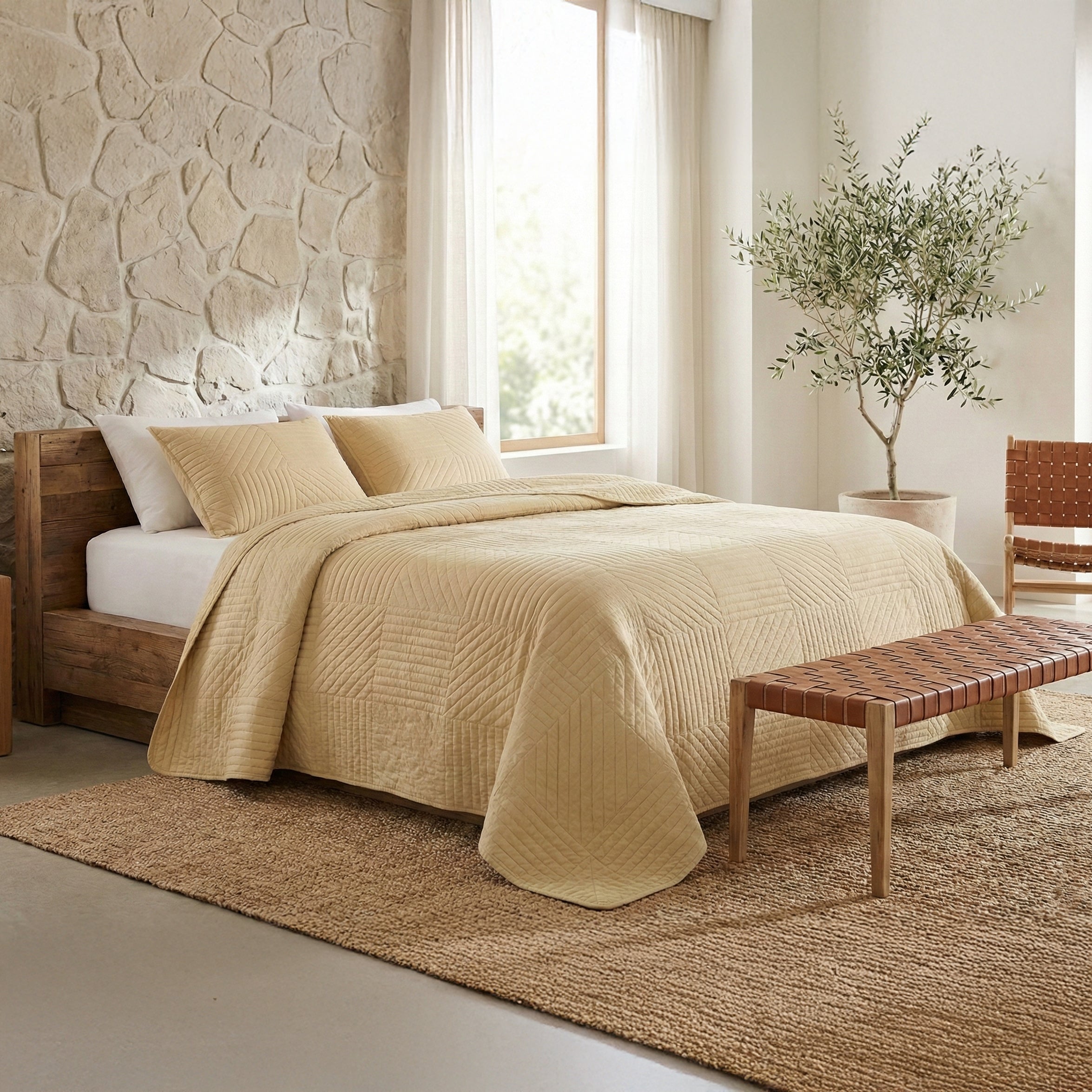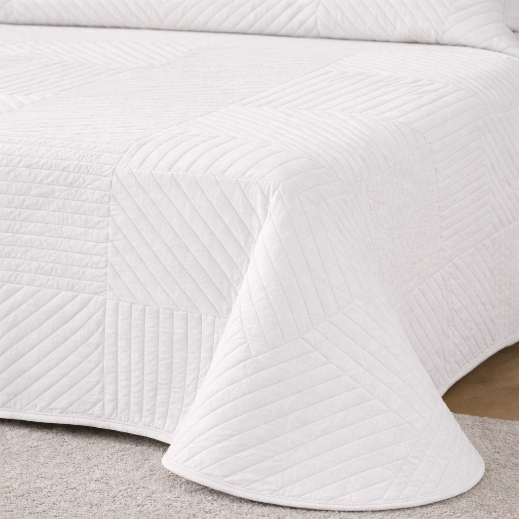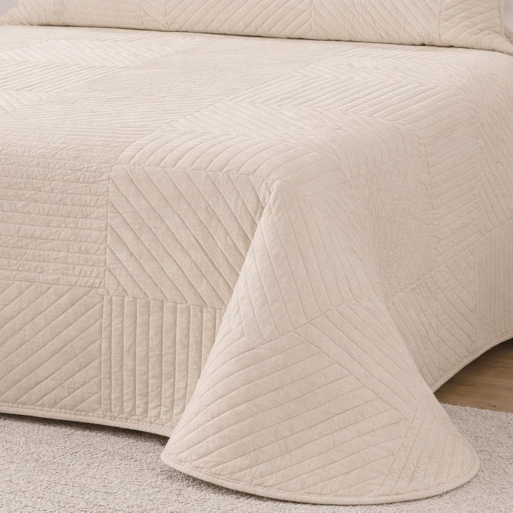 Renove o ambiente do seu quarto com esta colcha bouti em microfibra lavada, uma escolha elegante e intemporal para quem procura conforto aliado a um design moderno. O padrão geométrico em relevo confere sofisticação visual, enquanto o toque extremamente suave proporciona uma sensação acolhedora e agradável ao descanso. Com enchimento leve de 100 g/m², é ideal para utilização durante todo o ano, garantindo equilíbrio entre leveza e conforto.