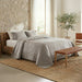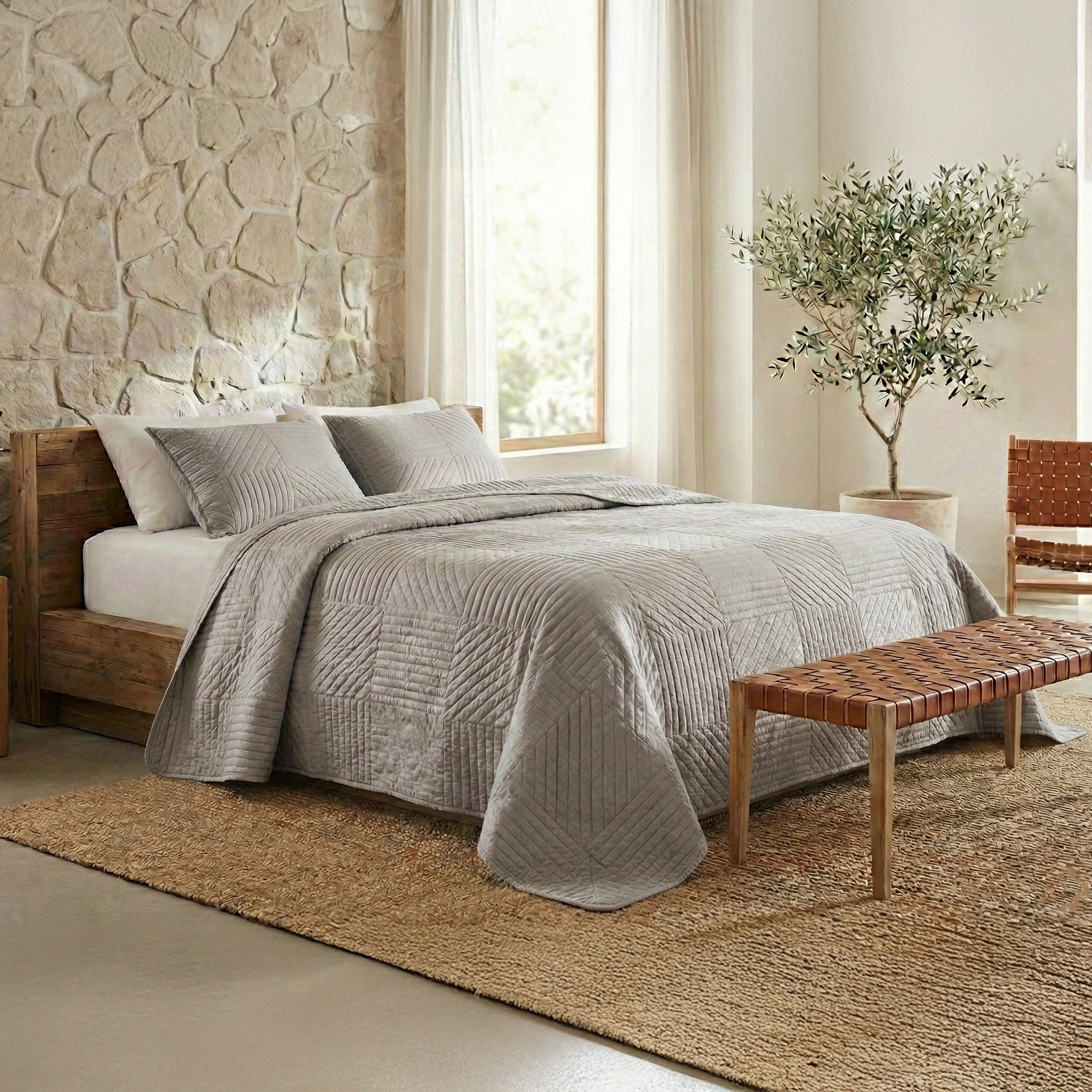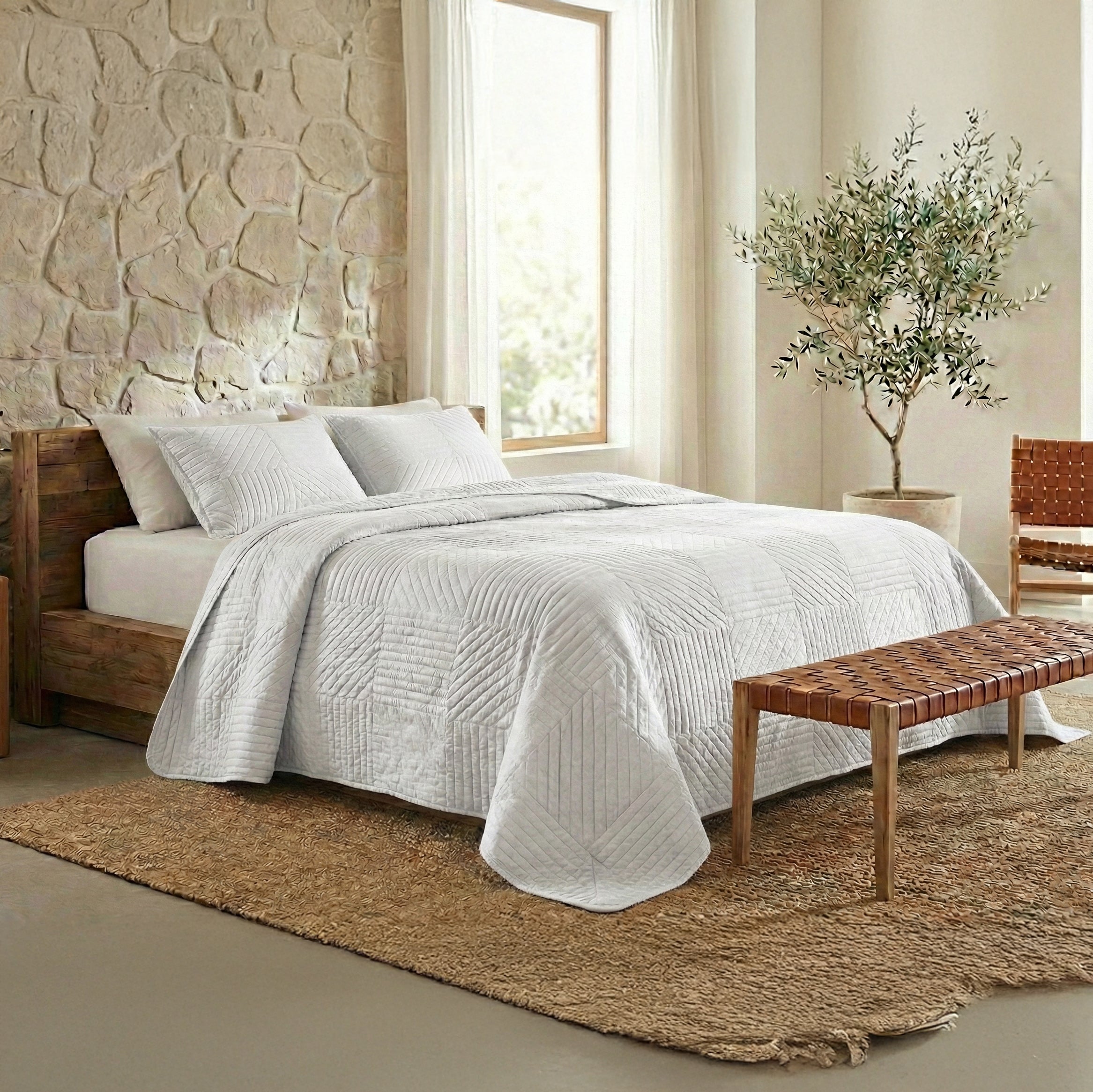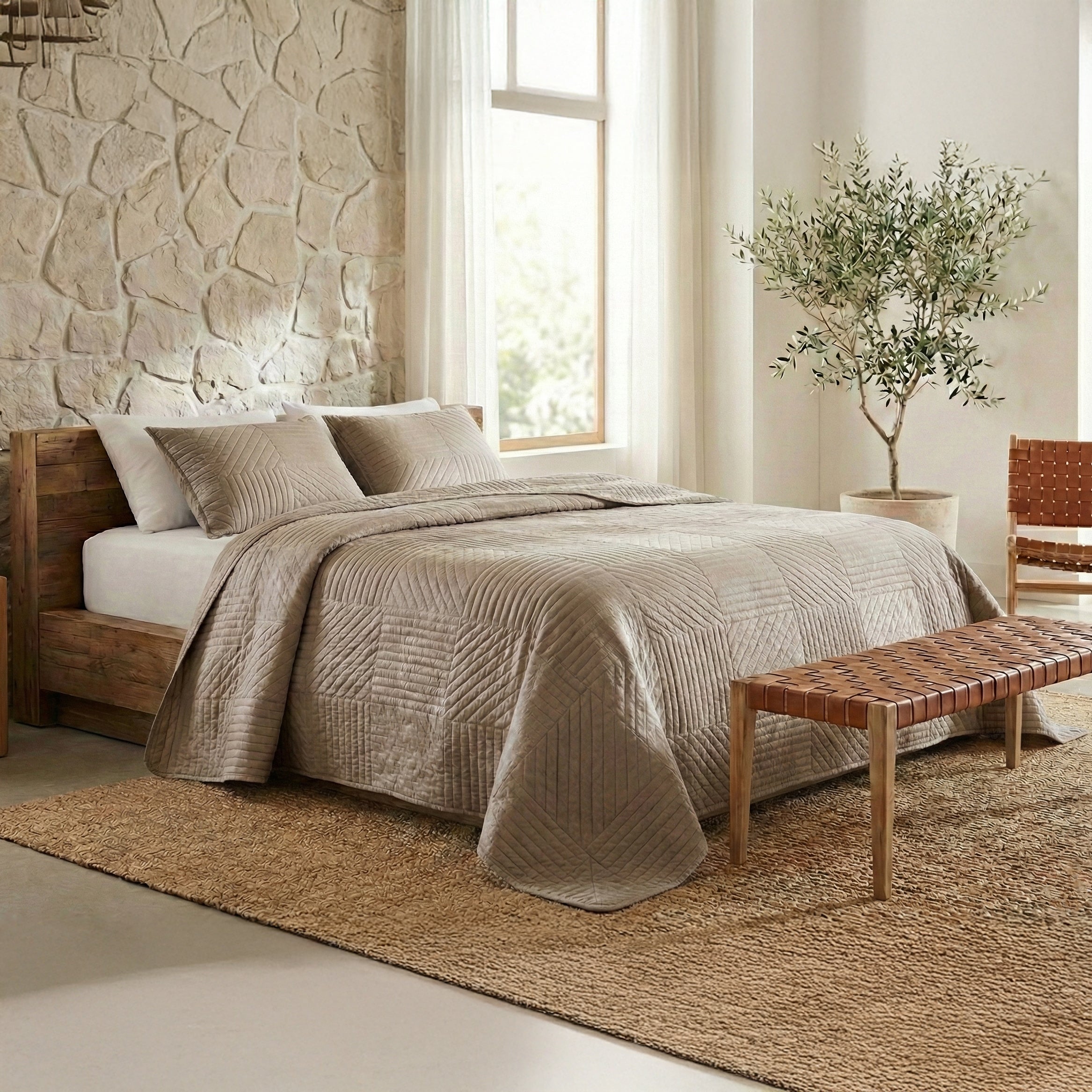 Renove o ambiente do seu quarto com esta colcha bouti em microfibra lavada, uma escolha elegante e intemporal para quem procura conforto aliado a um design moderno. O padrão geométrico em relevo confere sofisticação visual, enquanto o toque extremamente suave proporciona uma sensação acolhedora e agradável ao descanso. Com enchimento leve de 100 g/m², é ideal para utilização durante todo o ano, garantindo equilíbrio entre leveza e conforto.