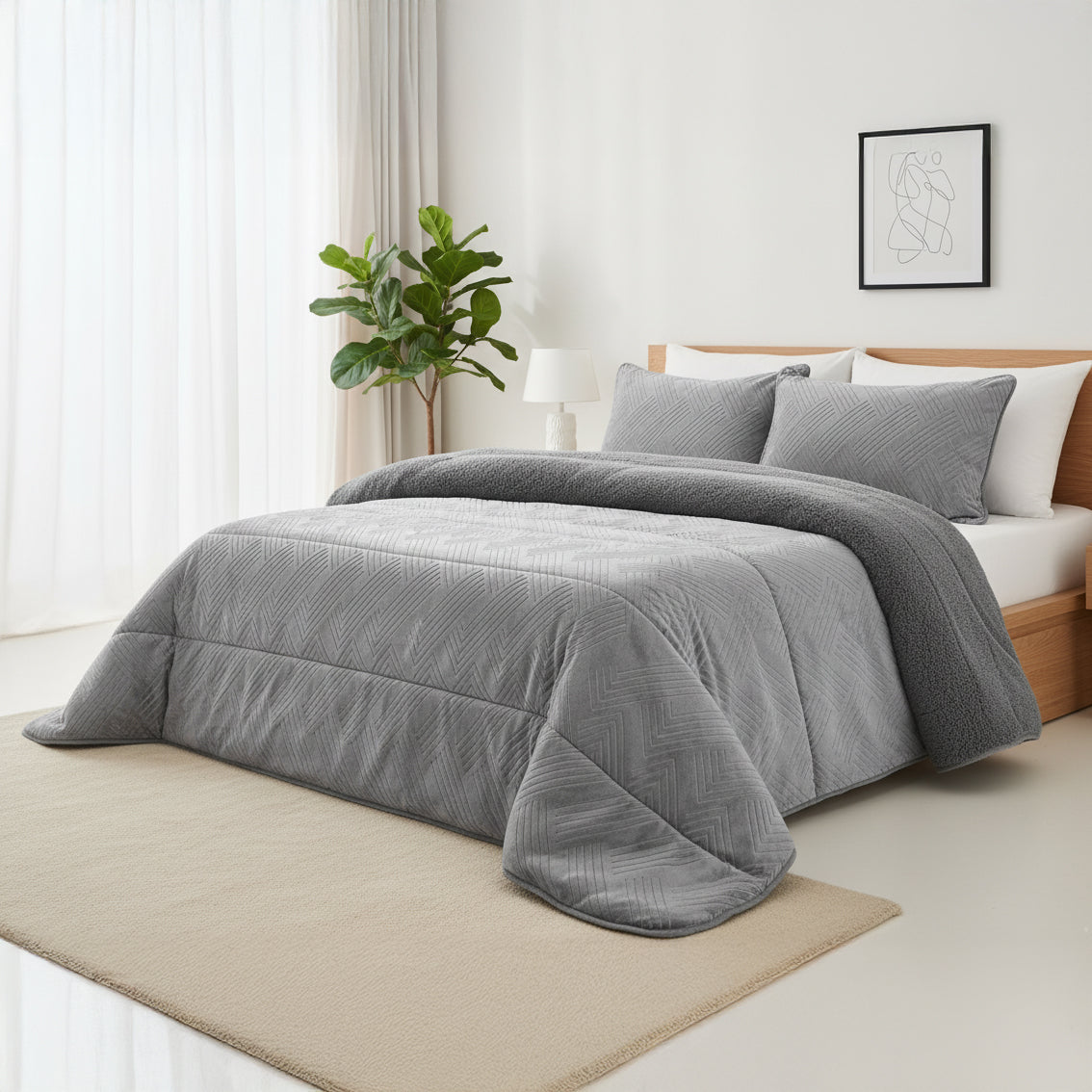O Edredon Fiorenza transforma o quarto num espaço de conforto absoluto. Produzido em microcoralina premium com acabamento jacquard, destaca-se pela textura elegante e toque sedoso. O interior em sherpa ultramacio oferece um efeito calor superior, ideal para enfrentar os dias frios com o máximo aconchego.